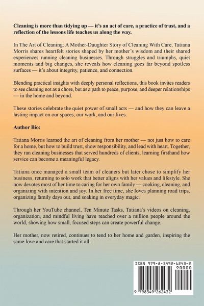 More than just a cleaning book-this is a love letter to home, heart, and heritage. The Art of Cleaning is a heartfelt guide that blends tradition, wisdom, and practical inspiration. Rooted in the meaningful bond between mother and daughter, this book reimagines cleaning not as a chore, but as a sacred practice of care, connection, and calm. Through personal stories, gentle routines, and time-honored techniques, you'll discover how everyday tasks can become soulful rituals that nourish both your space and spirit. Inside, you'll find:Mindful, effective cleaning methods that simplify your routine Personal reflections that reveal the emotional and spiritual side of home care Easy-to-follow rhythms that bring peace and joy to daily life Generational wisdom passed down with love and intention Whether you're setting up your first home or rekindling appreciation for the little things, The Art of Cleaning will inspire you to see tidying as a beautiful act of love-for your family, your home, and yourself.