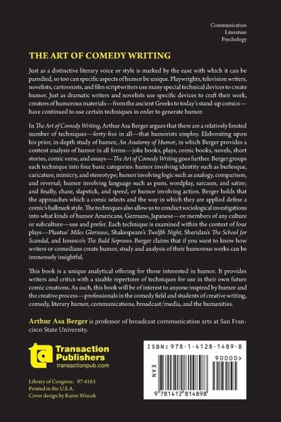 Just as a distinctive literary voice or style is marked by the ease with which it can be parodied, so too can specific aspects of humor be unique. Playwrights, television writers, novelists, cartoonists, and film scriptwriters use many special technical devices to create humor. Just as dramatic writers and novelists use specific devices to craft their work, creators of humorous materials-from the ancient Greeks to today's stand-up comics-have continued to use certain techniques in order to generate humor. In The Art of Comedy Writing, Arthur Asa Berger argues that there are a relatively limited number of techniques-forty-five in all-that humorists employ. Elaborating upon his prior, in-depth study of humor, An Anatomy of Humor, in which Berger provides a content analysis of humor in all forms-joke books, plays, comic books, novels, short stories, comic verse, and essays-The Art of Comedy Writing goes further. Berger groups each technique into four basic categories: humor involving identity such as burlesque, caricature, mimicry, and stereotype; humor involving logic such as analogy, comparison, and reversal; humor involving language such as puns, wordplay, sarcasm, and satire; and finally, chase, slapstick, and speed, or humor involving action. Berger claims that if you want to know how writers or comedians create humor study and analysis of their humorous works can be immensely insightful. This book is a unique analytical offering for those interested in humor. It provides writers and critics with a sizable repertoire of techniques for use in their own future comic creations. As such, this book will be of interest to people inspired by humor and the creative process-professionals in the comedy field and students of creative writing, comedy, literary humor, communications, broadcast/media, and the humanities.