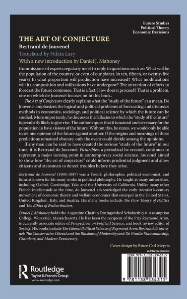 The Art of Conjecture clearly explains what the "study of the future" can mean. De Jouvenel emphasizes the logical and political problems of forecasting and discusses methods in economics, sociology, and political science by which the future can be studied
