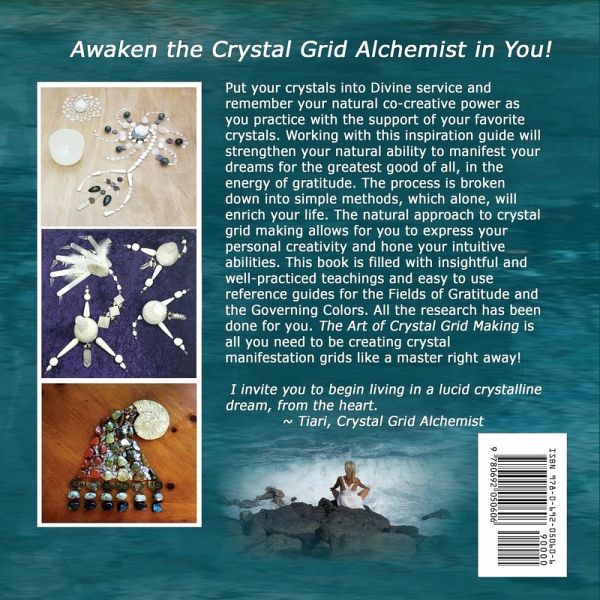 Aloha Beautiful Crystalline Beings! It is my privilege to share in the art of making crystal manifestation grids alchemically with you. I invite you to put your crystals into Divine service and remember your natural co-creative power as you practice with the support of your cherished collection. Working with this inspiration guide will strengthen your natural ability to manifest your dreams for the greatest good of all, in the highest energy of gratitude. The process is broken down into a simple method that is sure to enrich your life. This natural approach lets you work with your intuition and express your personal creativity. This book is filled with over 70 unique full-color crystal alchemy grid photos and quotes to inspire your designs and emotive direction. This book is so beautiful it can be used as a daily inspiration or affirmation coffee table book. Best of all, you will be given the keys to what makes for successful manifestation grids, as well as common causes for grids that do not perform and how to correct them. This book will deliver beyond your expectations. You will learn ancient history, interesting science, and from my experienced insights to the well-practiced methods that I share. This 184-page full-color book also includes two guides for the Fields of Gratitude and Governing Colors in the final chapters. These guides make for quick and proficient referencing that bring results and gorgeous grids. This book also includes a chapter on Frequently Asked Questions and shopping guidance on crystals and for gridding supplies. You will learn about complementary items that will support your affirmations and that work in synergy with your collection to strengthen and beautify your grids. You will discover what sacred geometry has to offer and how to effectively incorporate essential oils, and the gifts of nature, into your works of art. However, this book is about so much more than the art of crystal gridding alchemically. It is about the interpersonal journey of spending thoughtful and heart-centered time with these magnificent beings of light, the crystal wisdom keepers. It is about developing a regular practice of cleansing the aura and being in the state of gratitude, the highest vibration with which to be in resonance. In this practice, we strengthen the alignment with our co-creative power and intelligence. In so doing, we better realize our own Divine nature and graciously become more receptive to receive our Divine inheritance, according to the Divine will, through our living trust in this Omnipresence. You are rich! This book is about realizing a support system that we have always had at our service. As we practice holding our alignment with the Divine heart steady, the crystal wisdom keepers are there to hold the vibration steady, if ever we are pulled away from our heart through fear. In practicing the methods shared, one's co-creative power and intuition will improve. The ultimate goal is to use our own crystalline being as a walking hologram projector. With regular practice, we remember how to walk in the flow of our own co-creative power and mastery. Creating crystal manifestation grids alchemically can become a deeply transformative experience. My goal is to show others how they can find more value, meaning and use from their own beautiful collection of crystals and stones. It is my goal that the information shared in this guide will answer your questions about gridding and even deliver beyond them. It is my goal that by becoming familiar with this book and working with it you will be creating crystal alchemy grids with confidence and greater proficiency. The Art of Crystal Grid Making is all you need to create crystal manifestation grids like a master and live the lucid dream. It is packed with encoded visuals and wording that is sure to activate and awaken the crystal grid alchemist within you. And so it is. ~from the heart