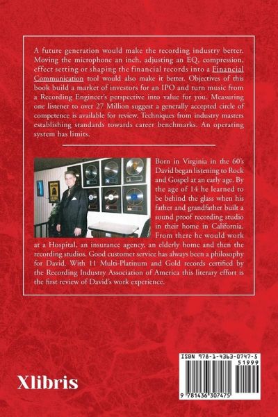 Learning to use Education as a Tool Music Business Management in this book begins in early childhood memory when God, music and the English Language are just starting to make sense. Sentence structure and definitions are years away yet words still have meaning, sounds still have a purpose while schedules and existence begin to formulate. In my young adult years my focus shifted from thinking as a musician to thinking as an engineer. For some reason my mind was learning to trust God to work out the details and work towards a career in the music business. The Art of Developing Fans For Life describes real life events of how recording artists communicate. What are the components & music performance data involved in the music business? Can we visualize the how the masters of the industry build their business? There is referenced material from professional resources. Successfully gained support from: o "This Business of Music" writer, M. William Krasilovsky o "The Real Warren Buffet" writer, James O'Loughlin o "The Art of Mixing" Publisher - MixBooks o "Compact Handbook of College Composition, Third Edition" by Maynard J. Brennan/Houghton Mifflin Company o "Effective Communication" by Harvard Business Review o Nielson Soundscan o Courtesy BMI A recording engineer is responsible for helping the recording artist transfer music to a listening audience. The importance of career benchmarks can only add value if the listening audience is generally accepting the product your working on. Recording techniques and examples in the book are reviewed as a Multi-Platinum and Gold recording engineer. This book is a literary tool to help bridge the gap of making a living working in the music business. Getting paid for working is a plus and learning to manage the experience is what my literary efforts are about. Upward Communication, locating a circle of competence and applying industry standard approaches to small business through creating tangible literary support in the field of engineering helps to move the subject to another level. Also the tangible asset is based on real life experiences from two generations ago to future generations from now. Creative writing skills in the academic field endeavor to create viable income as a writer. As earlier stated the language of an infant can make a heart grow fonder. The language of someone learning to appreciate the recording techniques shown by masters is part of the formula to achieve great sounding records. Big VU meters on the compressors and Big VU Meters on the recording consoles shape the context of learning to trust the people you work with. As an individual my efforts work towards being as my grandfather was a first class citizen. My digital world is always improving and family always encourages me to work towards my goals and objectives. Adding value through work experience can be thought of as establishing employment opportunities of tomorrow. Learning to become an entrepreneur stepping on the academic references that this book has successfully gained. Each topic of discussion focuses on transferring sound recordings into a marketable asset that will enhance my future employment opportunities. Chapters 1 through 9 introduce new concepts in the Music Business as well as use original text. 1. Integrating with Customer Service 2. Build your knowledge base for a future reference 3. Interact with the Online Glossary 4. Invest into Copyrights 5. Market your skills 6. Develop new Products and Services Design the small business to work closely with major corporations. Large companies like Berkshire Hathaway and Guitar Center become good neighbors. Although their business models are different they are fulfilling a service and generating employment opportunities. Employment and working at home or at the office A mobile work environment is subjective and necessary. Transportation of sound recordings becomes new again based on real life