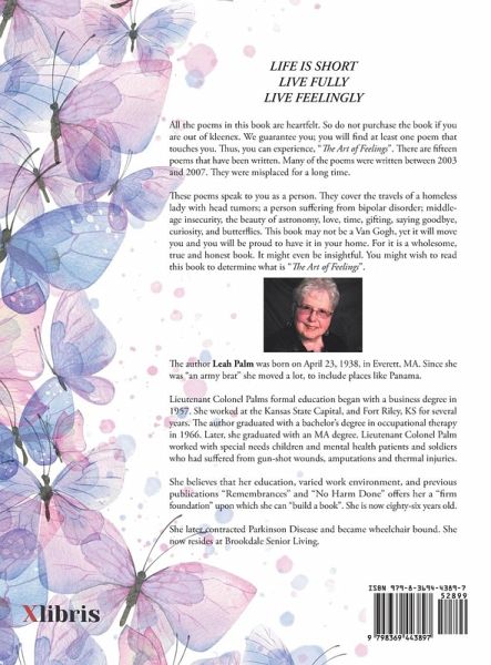 All the poems in this book are heartfelt. So do not purchase the book if you are out of kleenex. We guarantee you; you will find at least one poem that touches you. Thus, you can experience, "The Art of Feelings". There are fifteen poems that have been written. Many of the poems were written between 2003 and 2007. They were misplaced for a long time. These poems speak to you as a person. They cover the travels of a homeless lady with head tumors; a person suffering from bipolar disorder; middle-age insecurity, the beauty of astronomy, love, time, gifting, saying goodbye, curiosity, and butterflies. This book may not be a Van Gogh, yet it will move you and you will be proud to have it in your home. For it is a wholesome, true and honest book. It might even be insightful. You might wish to read this book to determine what is "The Art of Feelings".