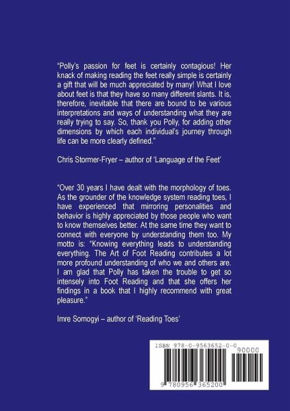Our feet reveal who we truly are! This practical guide to Foot Reading enables self-empowerment through observation of feet & how to read other people's motivations, personality and potential, just by looking at their feet. "Polly's passion for feet is certainly contagious! Her knack of making reading the feet really simple is certainly a gift that will be much appreciated by many! What I love about feet is that they have so many different slants. It is, therefore, inevitable that there are bound to be various interpretations and ways of understanding what they are really trying to say. So, thank you Polly, for adding other dimensions by which each individual's journey through life can be more clearly defined." Chris Stormer-Fryer - author of 'Language of the Feet'