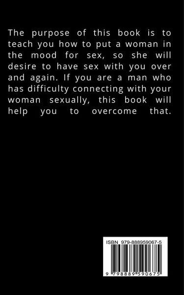 The purpose of this book is to teach you how to put a woman in the mood for sex, so she will desire to have sex with you over and again. If you are a man who has difficulty connecting with your woman sexually, this book will help you to overcome that. Foreplay is one thing all women cannot get enough of. Women are very emotional, and that is why they like, enjoy and always desire foreplay. So, your duty as a man is to give your woman what she wants. And she will respond by giving you what you want also. Unlike men, women do not easily get aroused sexually. This is because their bodies need some help to warm up, and to produce the required lubrication for enjoyable sex. Women's emotions also require that they feel a sense of closeness and mutual respect with their partners. You can achieve all of this through foreplay, which will also help your partner feel desired by you. If you just want to jump on your partner and have sex with her without adequately preparing her body for it, she will feel like a sex object that you merely want to use to satisfy yourself. Now, every woman is different, and some of them might be able to get right into sex without foreplay. The odds, however, are that your woman will need to get wet sufficiently first before you too can enjoy the sex.