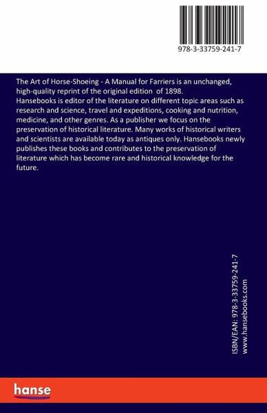 The Art of Horse-Shoeing - A Manual for Farriers is an unchanged, high-quality reprint of the original edition of 1898.