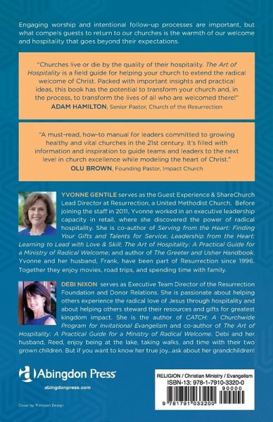 Create a culture of radical hospitality that surprises and delights guests beyond their expectations. Engaging worship and intentional follow-up processes are important, but what compels guests to return to our churches is the warmth of our welcome and hospitality that goes beyond their expectations. In The Art of Hospitality, Yvonne Gentile and Debi Nixon guide you and your church creating radical hospitality that infiltrates the heart and culture of the entire congregation. Complete with key principles and proven techniques and strategies, this compelling and practical program will transform the way you do church, leaving guests surprised, delighted, and eager to return. This Revised Edition includes new insights and strategies for effective hospitality and welcome in all aspects of your digital and in-person ministry. This book is for pastors and other leaders in the church. Choose the Companion Book for everyone else in the congregation.