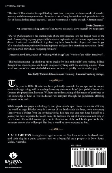 The year is 1097. Britain has been politically unstable for an age, and it doesn't seem as though things will be settling down any time soon. It isn't just political issues that threaten the population, however. Without an understanding of the nature of pestilence or the knowledge of how to treat it, disease runs rampant through the population, affecting everyone in its path. While tragedy rampages unchallenged, one place stands apart from the events afflicting the world at large. Hidden away in a corner of the land stands the large, stone monastery that serves as a shelter from the terrifying world. It is here that one man finds himself on a journey he never expected he would take. He discovers the art of illumination, not only in the creation of beautiful manuscripts, but in illumination of the soul. In the process, he also uncovers a secret that will propel him into a world he never expected to find.