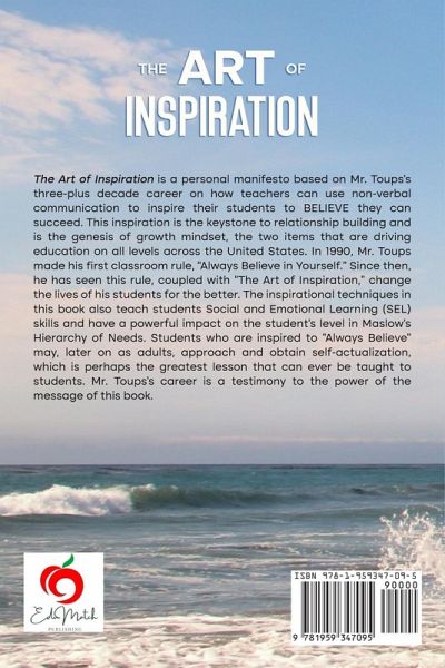 The Art of Inspiration is a personal manifesto based on Mr. Toups's three-plus decade career on how teachers can use non-verbal communication to inspire their students to BELIEVE they can succeed. This inspiration is the keystone to relationship building and is the genesis of growth mindset, the two items that are driving education on all levels across the United States. In 1990, Mr. Toups made his first classroom rule, "Always Believe in Yourself." Since then, he has seen this rule, coupled with "The Art of Inspiration," change the lives of his students for the better. The inspirational techniques in this book also teach students Social and Emotional Learning (SEL) skills and have a powerful impact on the student's level in Maslow's Hierarchy of Needs. Students who are inspired to "Always Believe" may, later on as adults, approach and obtain self-actualization, which is perhaps the greatest lesson that can ever be taught to students. Mr. Toups's career is a testimony to the power of the message of this book