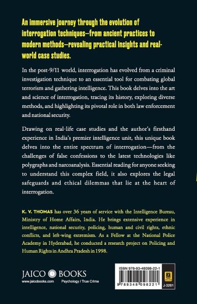 An immersive journey through the evolution of interrogation techniques-from ancient practices to modern methods-revealing practical insights and real-world case studies.In the post-9/11 world, interrogation has evolved from a criminal investigation technique to an essential tool for combating global terrorism and gathering intelligence. This book delves into the art and science of interrogation, tracing its history, exploring diverse methods, and highlighting its pivotal role in both law enforcement and national security.Drawing on real-life case studies and the author's firsthand experience in India's premier intelligence unit, this unique book delves into the entire spectrum of interrogation-from the challenges of false confessions to the latest technologies like polygraphs and narcoanalysis. Essential reading for anyone seeking to understand this complex field, it also explores the legal safeguards and ethical dilemmas that lie at the heart of interrogation.