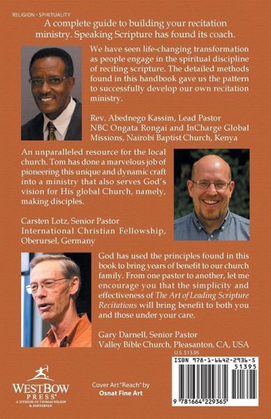 Confidently step into the arena of heartfelt presentation of Scripture with this trove of proven techniques and innovative craft in hand. The Art of Leading Scripture Recitations is a focused guide that equips leaders with a method to involve every member in both the life of the church and their own spiritual growth. This definitive guide to the discipline of Scripture recitation maps your course from initiating the ministry to spreading recitation into every aspect of discipleship. Speaking Scripture naturally and clearly has found its coach.