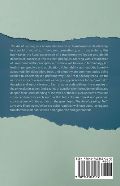 The Art of Leading is a unique discussion on transformative leadership. In a world of experts, influencers, consultants, and researchers, this book takes the lived experience of a transformative leader and distills decades of leadership into thirteen principles. Starting with a foundation of Love, none of the principles in this book will be new in terminology but fresh in perspective and application. Vulnerability, authenticity, honesty, accountability, delegation, trust, and empathy are common topics being applied to leadership in a profound way. The Art of Leading reads like the narrative story of a seasoned leader giving you access to their journal of thoughts and lessons learned. Each chapter ends with real life examples of the principles in action, and a series of questions for the reader to reflect and deepen their understanding of the text. For those visual learners a YouTube video is offered for each section that feels like an honest and personal conversation with the author on the given topic. The Art of Leading: Truth Love and Empathy in Action is a quick read that will have deep, lasting and transformative impact across demographics and generations.