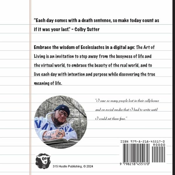 In today's fast-paced and digitally driven world, finding the wisdom to truly live in the moment has become a rare and precious art. "The Art of Living" is a transformative book that draws inspiration from the timeless wisdom found in the Book of Ecclesiastes in the Bible. It offers readers profound insights and practical guidance to help them rediscover the beauty of living in the present moment. Ecclesiastes, a book traditionally attributed to King Solomon, contemplates the meaning of life, the pursuit of happiness, and the ever-elusive quest for fulfillment. "The Art of Living" takes these age-old themes and applies them to our modern lives, where the constant presence of digital devices and social media often distracts us from the here and now. One of the standout features of this book is the Cell Phone Free Pledge, which invites readers to commit to a digital detox. By temporarily disconnecting from the constant barrage of notifications and screens, individuals are encouraged to engage more deeply with the world around them. This pledge serves as a tangible reminder of the importance of being present with loved ones, embracing solitude, and connecting with the natural world. "The Art of Living" explores key principles from Ecclesiastes, such as the value of simplicity, the significance of relationships, and the pursuit of meaning over materialism. Through relatable anecdotes, practical exercises, and thought-provoking questions, the book guides readers on a journey toward a more mindful and fulfilling life. Whether you're seeking to break free from the digital noise, strengthen your relationships, or simply find contentment in the present moment, "The Art of Living" provides timeless wisdom for our modern age. This book is a heartfelt invitation to step away from the virtual world, embrace the beauty of the real world, and live each day with intention and purpose.