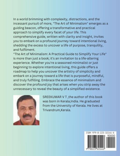 In a world brimming with complexity, distractions, and the incessant pursuit of more, "The Art of Minimalism" emerges as a guiding beacon, offering a transformative and practical approach to simplify every facet of your life. This comprehensive guide, written with clarity and insight, invites you to embark on a profound journey toward intentional living, shedding the excess to uncover a life of purpose, tranquility, and fulfilment. "The Art of Minimalism: A Practical Guide to Simplify Your Life" is more than just a book; it's an invitation to a life-altering experience. Whether you're a seasoned minimalist or just beginning to explore intentional living, this guide offers a roadmap to help you uncover the artistry of simplicity and embark on a journey toward a life that is purposeful, mindful, and truly fulfilling. Embrace the essence of minimalism and discover the profound joy that arises when you strip away the unnecessary to reveal the beauty of a simplified existence.