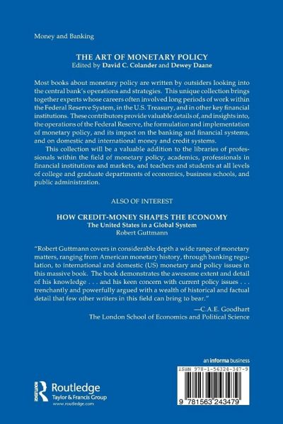 Introduction: The Art of Monetary Policy, David Colander, Dewey Daane Part 1 General Issues Chapter 1 The Human Factor and the Fed, Paul A. Volcker Chapter 2 Change and the Art of Monetary Policy, Dennis Weatherstone Chapter 3 The Limitations of Monetary Policy, Robert C. Holland Chapter 4 A Primer on the U.S. Banking Situation, Albert M. Wojnilower Chapter 5 Outlook for the Banking and Financial System: The Year 2000, John Rau Part 2 Real-World Policy Chapter 6 The Fed: Reconciling Autonomy and Democracy, Bruce K. MacLaury Chapter 7 Monetary Policy as Viewed by a Money Market Part Icipant, David M. Jones Chapter 8 A Monetarist's Confession, Eugene A. Leonard Part 3 Operational Details Chapter 9 The Implementation of Monetary Policy, Peter D. Sternlight Chapter 10 Debt Management, Richard V. Adams Chapter 11 The Federal Open Market Committee in Action, Dewey Daane Part 4 International Monetary Issues Chapter 12 The Globalization of World Financial Markets, Stephen H. Axilrod Chapter 13 A Trader's View of the Foreign Exchange Market, Scott E. Pardee Chapter 14 Monetary and Exchange Rate Policy Implementation, Margaret Greene Chapter 15 Fixed Versus Fluctuating Exchange Rates, Francis H. Schott Chapter 16 International Coordination of National Economic Policies, Robert Solomon