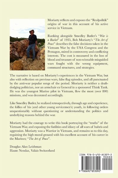 Bob Moriarty's The Art of Peace is on one level an artfully composed autobiography recounting the coming of age of a young man who was to become the youngest Naval Aviator and Marine pilot in the Vietnam era. But it also accomplishes what perhaps no other book on the topic even considers - tackling how to avoid the same mistakes in the future. How can we look at things from a different perspective in order to sidestep most armed conflicts in the first place? He writes about Vietnam, "We had no strategy other than just to fight the war. Our enemies, however, knew exactly what victory meant to them. They wanted to control their own destiny. They wanted to run their own country and had been fighting for independence since 1930..." Sounds like something that happened in America a long time ago. A lot of writers would take half a book to say what Moriarty converys in the last dozen pages of his book. He suggests, "Between the chaos in the Middle East and the slow motion train wreck of the world's financial system, our world is undergoing the greatest change since the Peace of Westphalia signed in 1648 that ended the Thirty Years' War...(which) essentially created the concept of a 'nation state' with sovereignty over its own territory and affairs." And set into motion the idea that you don't attack another state unless they attack you first.