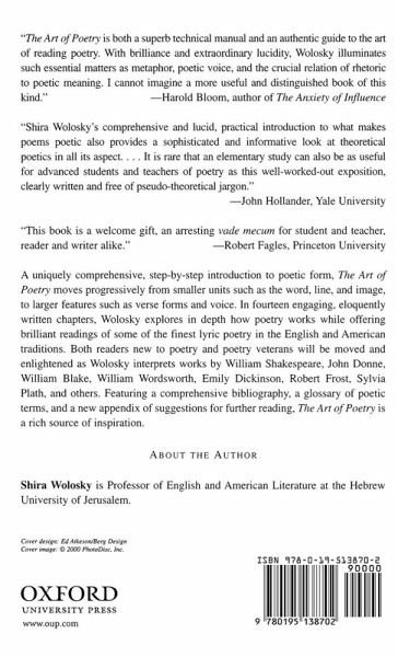 Anyone who has been asked to read and understand a poem has probably wondered: What does this really mean? Have I understood this the way I was supposed to? Did I get it? As the least literal of all of forms of creative writing, poetry is for many readers also the most cryptic. Confronted by the mysteries of poetic interpretation, some people are intrigued, some become addicted, others are left frustrated. Shira Wolosky's accessibly written book, The Art of