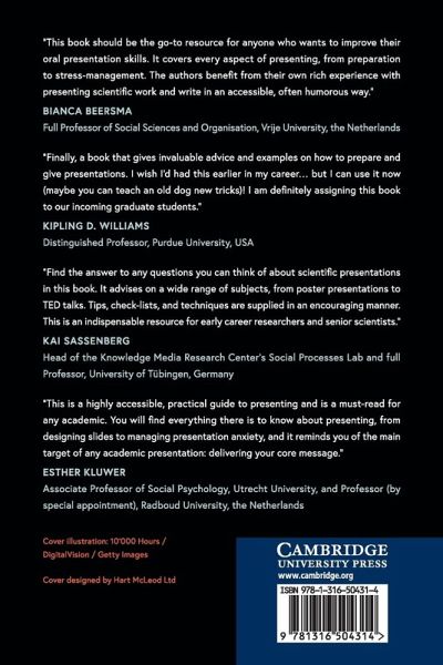 Part I. Preparing your Presentation: 1. The core message 2. The pieces of the puzzle 3. It's all about design: slide design 4. Practice, practice, practice Part II. Delivering your Presentation: 5. The moment of truth: Stand up and deliver 6. Discussion time 7. Verbal and non-verbal behaviour 8. How to deal with stress Part III. Adapting your Presentation: 9. Various presentation formats 10. Cultural differences 11. Addressing different audiences Part IV. Attending Oral Presentations: 12. How to be a good audience member 13. Making the most of conferences References Index.