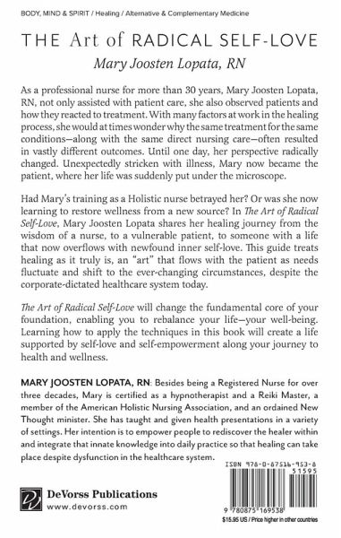 GOLD Award Winner - Health & Wellness Category in the 2025 COVR Visionary Awards! The Art of Radical Self-Love provides tools that build a new life supported by self-empowerment along the journey to wellness. A nurse is someone who delivers direct patient care and acts as an advocate and health educator for patients and families. To most, this sounds like more than just tender loving care. To others it may create fear causing them to struggle and ignore their inherent healing power of self-love. You see, not everyone realizes that a deep love for themselves is essential to the healing process from within . . . a most radical concept. As a professional nurse for more than 30 years, Mary Joosten Lopata, MA, RN, not only assisted with patient care, she also observed patients. At times, she would wonder why the same treatment often resulted in vastly different outcomes. Then her perspective changed when she was unexpectedly stricken with illness. Mary now became the patient and her life was suddenly under the microscope. Had Mary’s training as a Holistic nurse betrayed her? Or was she now learning to restore wellness from a new source? In The Art of Radical Self-Love, Mary Joosten Lopata shares her healing journey from the wisdom of a nurse with the heart of a vulnerable patient, to someone with a life that now overflows with newfound self-love. The Art of Radical Self-Love is a roadmap to restoring personal wellness from within. This guide treats healing as it truly is, an “art” that flows with the patient as needs fluctuate and shift to the ever-changing circumstances despite today’s corporate-dictated healthcare system.