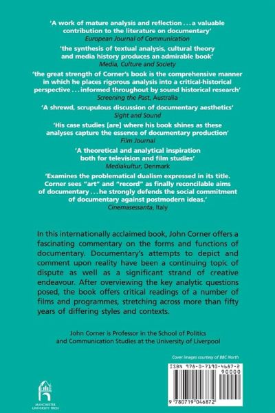 Documentary is a controversial and important area of media production. The art of record is a fascinating insight into the function of documentary in film and television. Its attempts to depict reality, and to comment on it, have provoked disagreement from the 1920s to the present day. Recent debates about knowledge and representation, and about the changing character of public culture, have increased its interest and relevance. John Corner presents a clear overview of the theoretical issues and critical debates around documentary, and discusses the development of the main styles and approaches, including dramadocs and fly-on-the-wall. He also looks at the dual identity of work in documentary as both artefact and as reference. The book provides a valuable detailed analysis of specific examples of powerful documentary films and programmes such as Cathy Come Home, Life and Times of Rosie the Rivetter and When the Dog Bites.