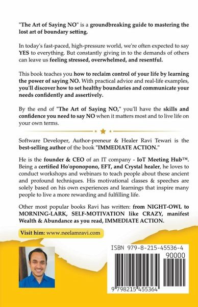¿ Are you feeling like your life is spiraling out of control? ¿ Do you struggle with putting yourself first because of a constant need to please others? ¿ Do you feel guilty saying NO to requests from friends, family, and coworkers? It's time to take back control and learn the art of saying NO! If you are in PAIN, this book will give you PLEASURE! If you have a PROBLEM, this book will provide you with a SOLUTION! ¿ Why Say NO? The secret to saying NO effectively lies in the art of the Positive NO. This valuable life skill will change how you communicate and empower you to make decisions that align with your values and priorities. If you learn how to say NO, you will embrace the power of this most important word in the language. You can use this word to protect yourself and stand up for what matters to you. So, it's time to take charge of your life and say NO without guilt! ¿ Why Only This Book? Say goodbye to the fear of damaging relationships and embrace the power of the Positive NO. With this book in your hands, get ready to transform your communication skills and find the right YES for you! Don't worry if saying NO doesn't come naturally to you; this book has covered you! With the methods and techniques explained in this book, you'll learn how to: ¿ Assert yourself without hurting anyone's feelings ¿ Confidently ask for what you really want ¿ Defend your interests ¿ Reclaim your time and energy by setting healthy boundaries ¿ Resist manipulation while reaching a mutually beneficial outcome ¿ Completely transform your life with the simple yet powerful word NO This book offers practical and proven advice based on Ravi L Tewari's live teachings, webinars, and coachings for managers and professionals. You'll learn how to say goodbye to people-pleasing tendencies and the fear of damaging relationships. You'll also learn to confidently say NO in any situation, whether with your coworker, spouse, or even a stranger. Most importantly, while reading this book, you will discover the psychological reasons behind your fear of saying NO and how to reprogram your beliefs to love and accept yourself. PLUS, you get a dedicated chapter on how to say NO to your spouse, kids, coworkers, and more! So, if you're serious about taking control of your life and putting yourself first, don't wait any longer! ♥ Scroll up, click the BUY BUTTON now, and unleash the transformative power of NO ♥ ¿ May I Be The Channel Of Blessings For Someone Today ¿
