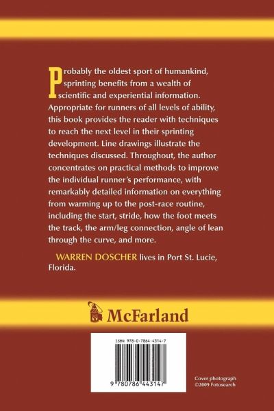 Probably the oldest sport of humankind, sprinting benefits from a wealth of scientific and experiential information. Appropriate for runners of all levels of ability, this book provides the reader with techniques to reach the next level in their sprinting development. Line drawings illustrate the techniques discussed. Throughout, the author concentrates on practical methods to improve the individual runner's performance, with remarkably detailed information on everything from warming up to the post-race routine, including the start, stride, how the foot meets the track, the arm/leg connection, angle of lean through the curve, and more.