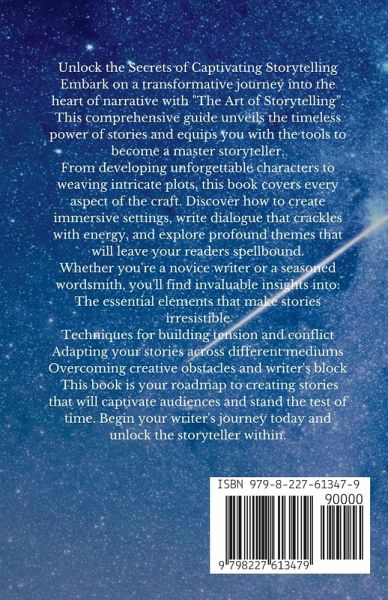 Unlock the Secrets of Captivating Storytelling Embark on a transformative journey into the heart of narrative with "The Art of Storytelling". This comprehensive guide unveils the timeless power of stories and equips you with the tools to become a master storyteller. This book covers every aspect of the craft, from developing unforgettable characters to weaving intricate plots. Discover how to create immersive settings, write dialogue that crackles with energy, and explore profound themes that will leave your readers spellbound. Whether you're a novice writer or a seasoned wordsmith, you'll find invaluable insights into: The essential elements that make stories irresistible Techniques for building tension and conflict Adapting your stories across different mediums Overcoming creative obstacles and writer's block This book is packed with practical exercises and draws from a wealth of examples. It is your roadmap to creating stories that will captivate audiences and stand the test of time. Begin your writer's journey today and unlock the storyteller within.