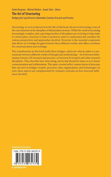 The contributions in this book build these bridges, which are vital in order to communicate between different worlds of thought and methodology - be it between Information Systems (IS) research and practice, or between IS research and other research disciplines. They describe how structuring can be and should be done so as to foster communication and collaboration. The topics covered reflect various layers of structure that can serve as bridges: models, processes, data, organizations, and technologies. In turn, these aspects are complemented by visionary outlooks on how structure influences the field.