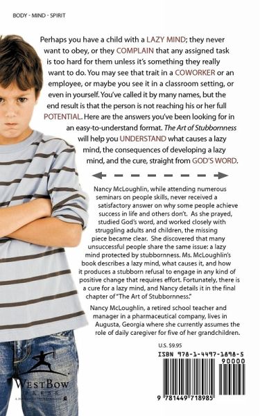 Perhaps you have a child with a lazy mind; they never want to obey, or they complain that any assigned task is too hard for them unless it's something they really want to do. You may see that trait in a coworker or an employee, or maybe you see it in a classroom setting, or even in yourself. You've called it by many names, but the end result is that the person is not reaching his or her full potential. Here are the answers you've been looking for in an easy-to-understand format. The Art of Stubbornness will help you understand what causes a lazy mind, the consequences of developing a lazy mind, and the cure, straight from God's word.