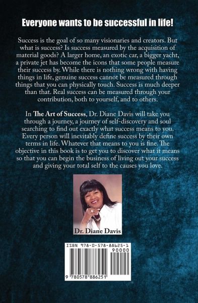 Everyone wants to be successful in Life! Success is the goal of so many visionaries and creator. But what is success? Is success measured by the acquisition of material goods? A larger home, an exotic car, a bigger yacht, a private jet has become the icons that some people measure their success by. While there is nothing wrong with having things in life, genuine success cannot be measured through things that you can physically touch. Success is much deeper than that Real success can be measured through your contribution, both to yourself and to others. In The Art of Success, Dr. Diane Davis will take you through a journey of self-discovery and soul searching to find out exactly what success means to you. Every reader will inevitably define success by their own terms in life. Whatever that means to you is fine. The objective in this book is to get you to discover what it means so that you can begin the business of living out your success and giving your total self to the causes you love. You will learn how to live your life in ways that make the best use of your personal power and lead you to fulfill your greatest dreams.