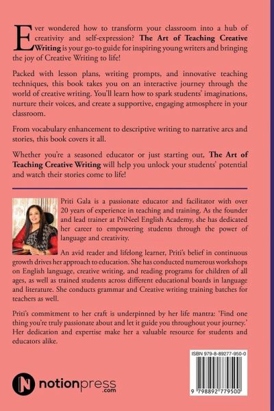 Ever wondered how to transform your classroom into a hub of creativity and self-expression? The Art of Teaching Creative Writing is your go-to guide for inspiring young writers and bringing the joy of Creative Writing to life! Packed with lesson plans, writing prompts, and innovative teaching techniques, this book takes you on an interactive journey through the world of creative writing. You'll learn how to spark students' imaginations, nurture their voices, and create a supportive, engaging atmosphere in your classroom. From vocabulary enhancement to descriptive writing to narrative arcs and stories, this book covers it all. Whether you're a seasoned educator or just starting out, The Art of Teaching Creative Writing will help you unlock your students' potential and watch their stories come to life!