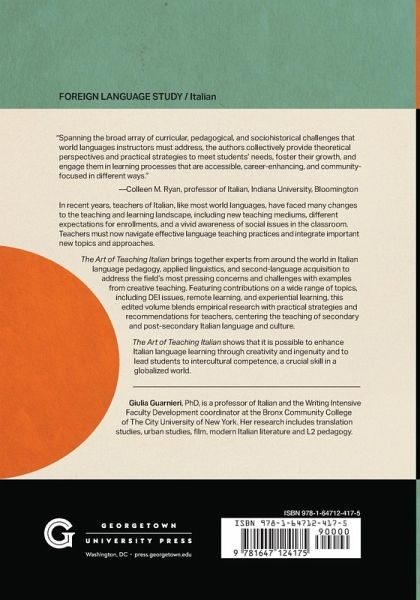 "Bringing together experts from around the world in Italian language pedagogy, applied linguistics, and second-language acquisition, this edited volume foregrounds the teaching of secondary and post-secondary Italian language and culture. Best practices for teaching Italian need continual nurturing and research in an ever-changing world, and The Art of Teaching Italian addresses the field's most pressing concerns and challenges with examples from creative teaching. Featuring contributions on a wide range of topics, including DEI issues, language ideologies, experiential learning, blended and online learning, and strategies for countering low enrollments, this book blends empirical research with practical strategies and recommendations for teachers. It will be a valuable addition to Italian language practitioners' and pedagogists' bookshelves"--