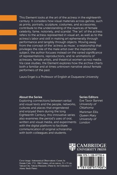 This Element looks at the art of the actress in the eighteenth century. It shows how visual materials across genres contribute to our understanding of the nuances of female celebrity, fame, notoriety, and scandal.