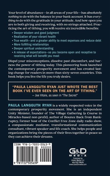 Dispel your misconceptions and dissolve past discomfort about tithing. Harness the power of tithing today. Say "thank you" for the abundance manifesting or appearing in your life right now - and in the days to come. This pioneering book launched the contemporary prosperity movement and has created lasting change for readers in more than 67 countries. As you discover this art, nothing can stand in your way of realizing the life you truly desire. PAULA LANGGUTH RYAN is a widely-respected voice in the contemporary prosperity movement. She is an independent Unity Minister, founder of The Village Gathering (a Course in Miracles-based non-profit), and the author of Bounce Back from Bankruptcy, former host of the Conflict Free Zone daily radio show, a spiritual mediator, transformational communication consultant and life coach. She helps people and organizations bring the pieces of their lives together in peace so they can achieve their dreams. "PAULA LANGGUTH RYAN JUST WROTE THE BEST BOOK I'VE EVER SEEN ON THE ART OF TITHING."- Joe Vitale, as seen in "The Secret"