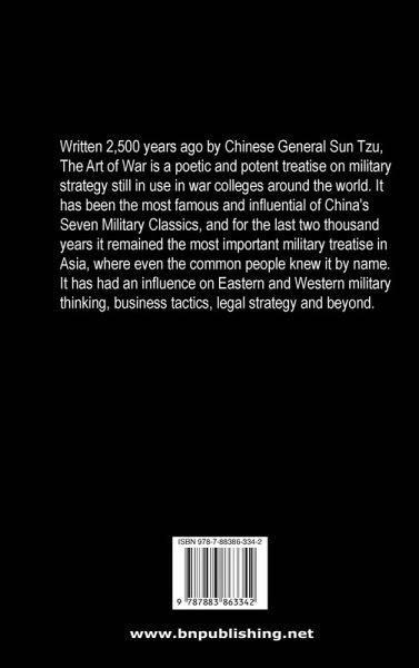 Written 2,500 years ago by Chinese General Sun Tzu, The Art of War is a poetic and potent treatise on military strategy still in use in war colleges around the world. It has been the most famous and influential of China's Seven Military Classics, and for the last two thousand years it remained the most important military treatise in Asia, where even the common people knew it by name. It has had an influence on Eastern and Western military thinking, business tactics, legal strategy and beyond.