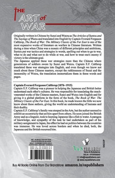 Originally written in Chinese by Sunzi and Wutzu as The Articles of Suntzu and The Sayings of Wutzu and translated into English by Captain Everard Ferguson Calthrop, The Book of War: The Military Classic of the Far East is one of the most expansive works of literature on warfare in Chinese literature. Written during a time when China was a mosaic of different principles and ambitions, Suntzu put war tactics and strategies in words, spelling out when to go to war, what to do and what not to do while at war, and how to treat one's enemy if victory is the ultimate goal. The Japanese applied these war strategies more than the Chinese where generations of soldiers swore by Sunzi and Wutzu. Captain E.F. Ferguson translated these war strategies into English, and even though we know not much about these Chinese masters, except the ruthlessness of Sunzi and the immorality of Wutzu, the translation immortalizes them in these words and pages.