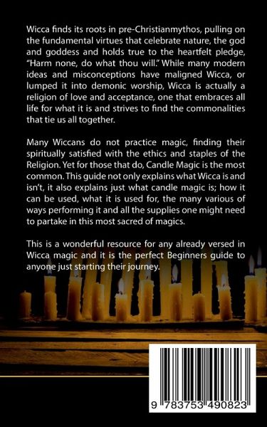 Wicca finds its roots in pre-Christian mythos, pulling on the fundamental virtues that celebrate nature, the god and goddess and holds true to the heartfelt pledge, "Harm none, do what thou will." While many modern ideas and misconceptions have maligned Wicca, or lumped it into demonic worship, Wicca is actually a religion of love and acceptance, one that embraces all life for what it is and strives to find the commonalities that tie us all together.Many Wiccans do not practice magic, finding their spiritually satisfied with the ethics and staples of the Religion. Yet for those that do, Candle Magic is the most common. This guide not only explains what Wicca is and isn't, it also explains just what candle magic is; how it can be used, what it is used for, the many various of ways performing it and all the supplies one might need to partake in this most sacred of magics.This is a wonderful resource for any already versed in Wicca magic and it is the perfect Beginners guide to anyone just starting their journey.