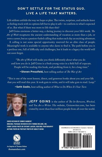 A USA TODAY, WASHINGTON POST, AND PUBLISHER'S WEEKLY BESTSELLER! The path to your life's work is difficult and risky, even scary, which is why few finish the journey. This book will help you discover your life's work to live a life that matters with passion and purpose. It's about the task you were born to do, your true life's work. Bestselling author and entrepreneur Jeff Goins explains how the search begins with passion but does not end there. Only when our interests connect with the needs of the world do we begin living for a larger purpose. Those who experience this intersection experience something exceptional and enviable. Though it is rare, such a life is attainable by anyone brave enough to try. Through personal experience, compelling case studies, and current research on the mysteries of motivation and talent, Jeff shows you how to find their vocation and what to expect along the way. In The Art of Work, you'll learn: * The seven stages of calling to discover your life's work * How accidental apprenticeships differ from mentoring and why taking action is key * How believing The Myth of the Leap can prevent you from achieving your dreams * To live The Portfolio Life and how it can lead to your greatest satisfaction and best work Our hearts crave connection to a meaningful calling. The Art of Work illuminates the proven path for anyone who wants to embrace that calling and build a body of work they can be proud of.