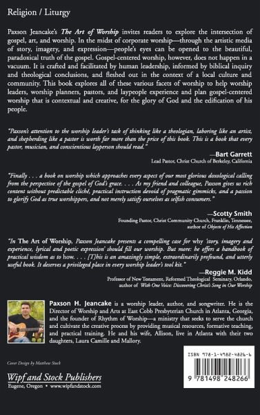 Paxson Jeancake's The Art of Worship invites readers to explore the intersection of gospel, art, and worship. In the midst of corporate worship--through the artistic media of story, imagery, and expression--people's eyes can be opened to the beautiful, paradoxical truth of the gospel. Gospel-centered worship, however, does not happen in a vacuum. It is crafted and facilitated by human leadership, informed by biblical inquiry and theological conclusions, and fleshed out in the context of a local culture and community. This book explores all of these various facets of worship to help worship leaders, worship planners, pastors, and laypeople experience and plan gospel-centered worship that is contextual and creative, for the glory of God and the edification of his people.