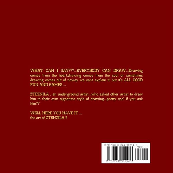 WHAT CAN I SAY???...EVERYBODY CAN DRAW...Drawing comes from the heart,drawing comes from the soul or sometimes drawing comes out of noway we can't explain it, but it's ALL GOOD FUN AND GAMES ... ZTEZNILA, an underground artist...who asked other artist to draw him in their own signature style of drawing...pretty cool if you ask him?? WELL HERE YOU HAVE IT ... the art of ZTENZILA !!