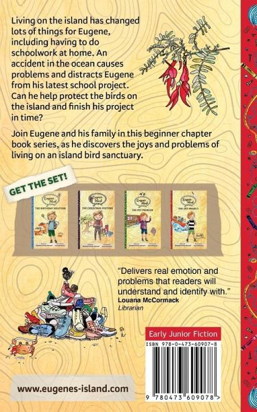Living on the island has changed lots of things for Eugene, including having to do schoolwork at home. An accident in the ocean causes problems and distracts Eugene from his latest school project. Can he help protect the birds on the island and finish his project in time? Join Eugene and his family in this beginner chapter book series as he discovers the joys and problems of living on an island bird sanctuary. Written by Elizabeth Kirkby-McLeod and illustrated by Anna McKessar, suits 5-8 year old independent readers or to read aloud to younger children. Books four in the series.