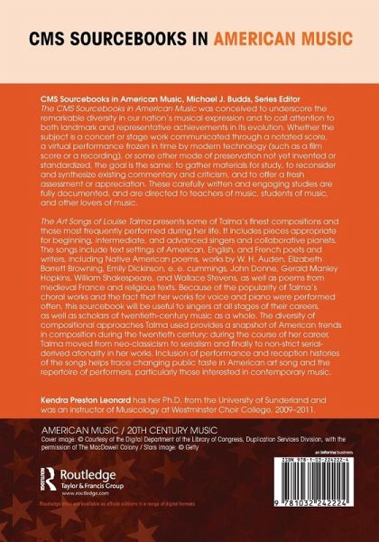 The Art Songs of Louise Talma presents some of Talma's finest compositions and those most frequently performed during her life. It includes pieces appropriate for beginning, intermediate, and advanced singers and collaborative pianists. The songs include text settings of American, English, and French poets and writers, including Native American poems, works by W. H. Auden, Elizabeth Barrett Browning, Emily Dickinson, e. e. cummings, John Donne, Gerald Manley Hopkins, William Shakespeare, and Wallace Stevens, as well as poems from medieval France and religious texts. Because of the popularity of Talma's choral works and the fact that her works for voice and piano were performed often, this sourcebook will be useful to singers at all stages of their careers, as well as scholars of twentieth-century music as a whole. The diversity of compositional approaches Talma used provides a snapshot of American trends in composition during the twentieth century; during the course of her career, Talma moved from neo-classicism to serialism and finally to non-strict serial-derived atonality in her works. Inclusion of performance and reception histories of the songs helps trace changing public taste in American art song and the repertoire of performers, particularly those interested in contemporary music.