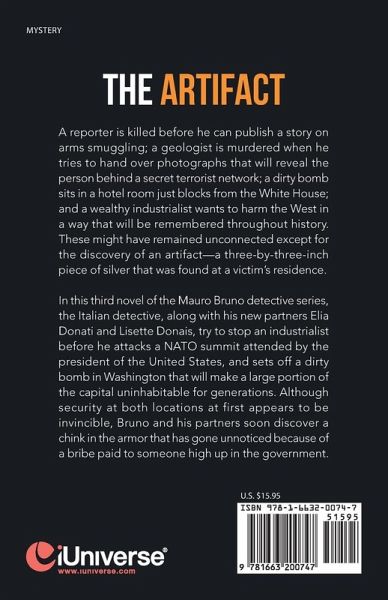 A reporter is killed before he can publish a story on arms smuggling; a geologist is murdered when he tries to hand over photographs that will reveal the person behind a secret terrorist network; a dirty bomb sits in a hotel room just blocks from the White House; and a wealthy industrialist wants to harm the west in a way that will be remembered throughout history. These might have remained unconnected except for the discovery of an artifact - a three-by-three-inch piece of silver that was found at a victim's residence. In this third novel of the Mauro Bruno detective series the Italian detective, along with his new partners Elia Donati and Lisette Donais, try and stop an industrialist before he attacks a NATO summit attended by the President of the United States, and sets off a dirty bomb in Washington that will make a large portion of the capital uninhabitable for generations. Although security at both locations at first appear to be invincible, Bruno and his partners soon discover a chink in the armor that has gone unnoticed because of a bribe paid to someone high up in the government.