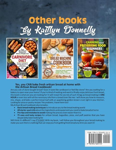 Yes, you CAN bake fresh artisan bread at home with the Artisan Bread Cookbook! Are you sick of store-bought bread? Does it taste like cardboard or feel like stone? Are you waiting for a bakery to open near your home? If you're tired of waiting and want to finally enjoy delicious fresh bread, this book is what are you are looking for! It will reveal the secrets of such things as bread making in ONE HOUR or even less with all the necessary info from a bread lover like me. I will show you how to measure, mix, shape, and bake a perfect bread loaf with an appetizing golden-brown crust right in your kitchen. Looking for pizza or pastry recipes? No problem, I have them too! My Artisan Bread Cookbook also includes: Basic bread making techniques to introduce you to the bread making world All starter-pack info about the ingredients and equipment you need to bake bread at home Pro-tips and mistakes to avoid making the process even easier than it is 75 easy and tasty recipes for artisan bread, baguettes, pizza, and puff pastries that you have desperately been looking for Still think it's difficult? I say IT'S EASY! With my book, I will follow you throughout your bread making to make you sure there is nothing that can stop you from getting fresh bread any time you want it!