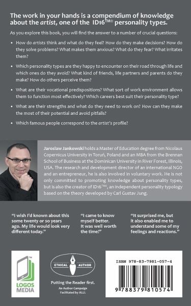 Discover a compendium of knowledge on the artist - ISFP personality type! As you explore this book, you will find the answer to a number of crucial questions: * How do artists think and what do they feel? How do they make decisions? How do they solve problems? What makes them anxious? What do they fear? What irritates them? * Which personality types are they happy to encounter on their road through life and which ones do they avoid? What kind of friends, life partners and parents do they make? How do others perceive them? * What are their vocational predispositions? What sort of work environment allows them to function most effectively? Which careers best suit their personality type? * What are their strengths and what do they need to work on? How can they make the most of their potential and avoid pitfalls? * Which famous people correspond to the artist's profile? * Which nation displays the most features characteristic of this personality type? This book is part of the ID16 Personality Types series. ID16 is a personality typology which draws on the theory developed by Carl Gustav Jung. Typologies formulated on the basis of Jung's theory are widely used in teaching, training, coaching and human resource management, as well as in career and relationship counselling. They also form a basis for numerous programmes supporting personal development and improving interpersonal relationships. The majority of global businesses employ Jungian personality tests as a standard tool in their recruitment procedures and vocational development processes. Table of Contents Preface ID16 and Jungian Personality Typology The Artist (ISFP) * The Personality in a Nutshell * General character traits * Socially * Work and career paths * Potential strengths and weaknesses * Personal development * Well-known figures The ID16 Personality Types in a Nutshell Additional information Recommended publications Bibliography About the Author