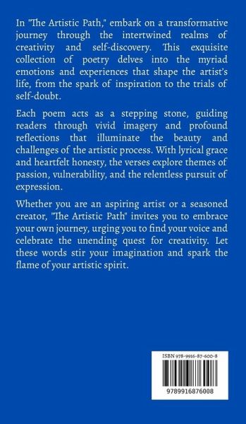 In "The Artistic Path," embark on a transformative journey through the intertwined realms of creativity and self-discovery. This exquisite collection of poetry delves into the myriad emotions and experiences that shape the artist's life, from the spark of inspiration to the trials of self-doubt. Each poem acts as a stepping stone, guiding readers through vivid imagery and profound reflections that illuminate the beauty and challenges of the artistic process. With lyrical grace and heartfelt honesty, the verses explore themes of passion, vulnerability, and the relentless pursuit of expression. Whether you are an aspiring artist or a seasoned creator, "The Artistic Path" invites you to embrace your own journey, urging you to find your voice and celebrate the unending quest for creativity. Let these words stir your imagination and spark the flame of your artistic spirit.