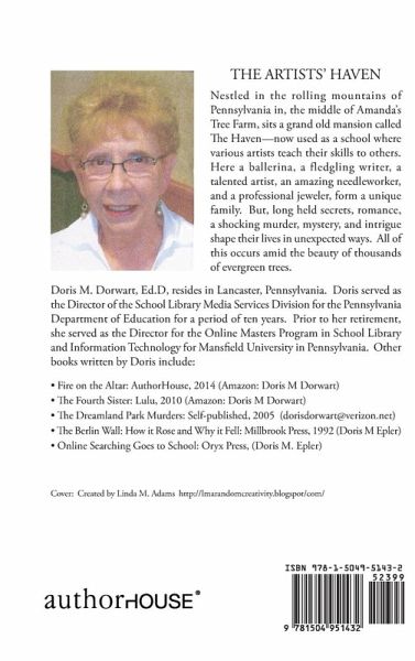 Nestled in the rolling mountains of Pennsylvania in, the middle of Amanda's Tree Farm, sits a grand old mansion called The Haven-now used as a school where various artists teach their skills to others. Here a ballerina, a fledgling writer, a talented artist, an amazing needleworker, and a professional jeweler, form a unique family. But, long held secrets, romance, a shocking murder, mystery, and intrigue shape their lives in unexpected ways. All of this occurs amid the beauty of thousands of evergreen trees.