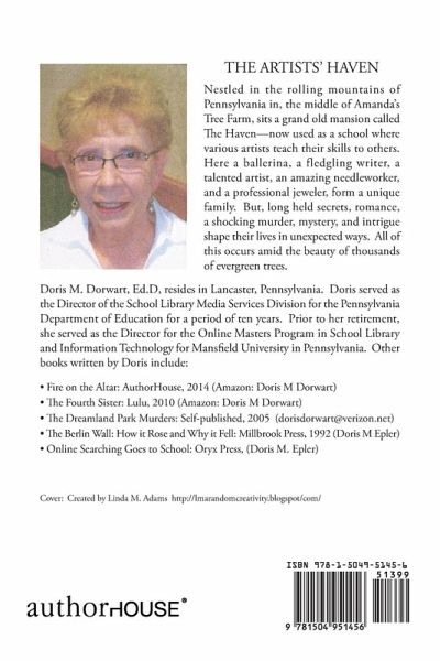 Nestled in the rolling mountains of Pennsylvania in, the middle of Amanda's Tree Farm, sits a grand old mansion called The Haven-now used as a school where various artists teach their skills to others. Here a ballerina, a fledgling writer, a talented artist, an amazing needleworker, and a professional jeweler, form a unique family. But, long held secrets, romance, a shocking murder, mystery, and intrigue shape their lives in unexpected ways. All of this occurs amid the beauty of thousands of evergreen trees.