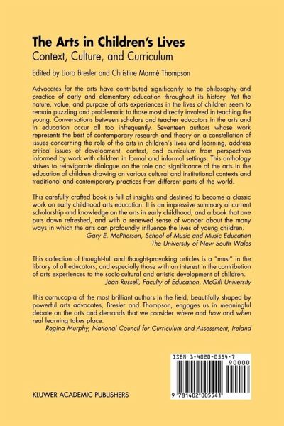 "This book is about getting down to the `basics' -art, poetry, music, dance and drama- that which comprises the most potent source of young children's learning, and permeates our understanding of culture, development theory and curriculum. Now is the time to look beyond the emergent phases in literacy or numeracy, to how one can emerge with well-developed `different selves'. The potential for learning in this book is vast-whether scribbling with crayons or producing videos-not just for the very young, but also for the reflective adult as teacher, researcher, policy developer or parent. This cornucopia of the most brilliant authors in the field, beautifully shaped by powerful arts advocates, Bresler and Thompson, engages us in meaningful debate on the arts and demands that we consider where and how and when real learning takes place."