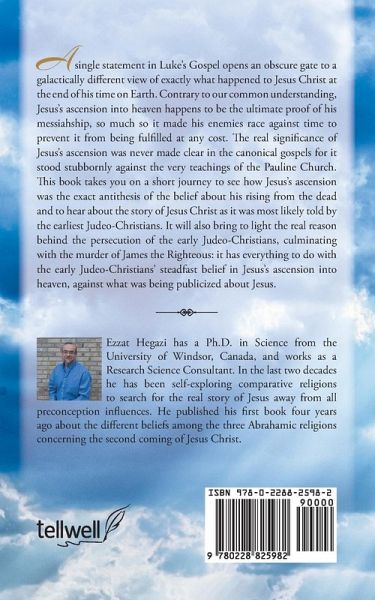 A single statement in Luke's Gospel opens an obscure gate to a galactically different view of exactly what happened to Jesus Christ at the end of his time on Earth. Contrary to our common understanding, Jesus's ascension into heaven happens to be the ultimate proof of his messiahship, so much so it made his enemies race against time to prevent it from being fulfilled at any cost. The real significance of Jesus's ascension was never made clear in the canonical gospels for it stood stubbornly against the very teachings of the Pauline Church. This book takes you on a short journey to see how Jesus's ascension was the exact antithesis of the belief about his rising from the dead and to hear about the story of Jesus Christ as it was most likely told by the earliest Judeo-Christians. It will also bring to light the real reason behind the persecution of the early Judeo-Christians, culminating with the murder of James the Righteous: it has everything to do with the early Judeo-Christians' steadfast belief in Jesus's ascension into heaven, against what was being publicized about Jesus.