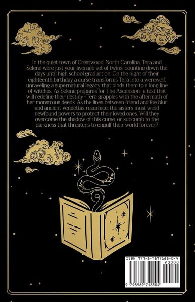 In the quiet town of Crestwood, North Carolina, Tera and Selene were just your average set of twins, counting down the days until high school graduation. On the night of their eighteenth birthday a curse transforms Tera into a werewolf, unraveling a supernatural legacy that binds them to a long line of witches. As Selene prepares for The Ascension-a test that will redefine their destiny-Tera grapples with the aftermath of her monstrous deeds. As the lines between friend and foe blur and ancient vendettas resurface, the sisters must wield newfound powers to protect their loved ones. Will they overcome the shadow of this curse, or succumb to the darkness that threatens to engulf their world forever?